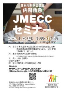 JMECC(Japanese Medical Emergency Care Cours :日本内科学会認定内科救急・ICLS講習会)は、心肺停止のみならず緊急を要する急病患者に対応できるよう日本救急医学会策定の「ICLS」を基礎に日本内科学会独自の「内科救急」をプログラムに導入した実技を中心とした講習会です。